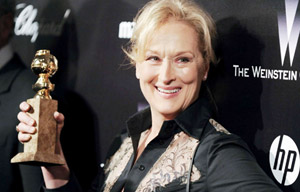 Actress Meryl Streep gets Golden Globe award for the best performance by an actress in a motion picture at the 69th annual Golden Globe Awards in Beverly Hills, California January 15, 2012.