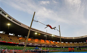 Huang Zhen from Shanxi won second place for clearing the 4.8m bar during the men's pole vaulting final at the 2017 National U20 Track and Field Championshipsin Ordos on June 3.