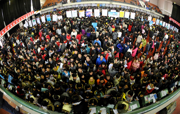 College students crowd a job fair in Tianjin, on Monday Jan 3, 2011. [Photo/Xinhua]
