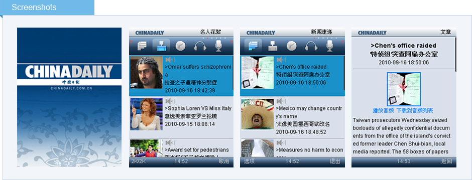 “ChinaDaily雙語聽報”內容包含當天要聞、明星八卦、體育賽事、英語熱詞等內容。所有內容均配有外籍專家的標準音頻,每日讓您獲得權威實時雙語資訊的同時,更讓您輕松掌握大量新詞匯并提高英語閱讀能力。
