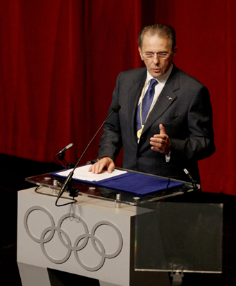 International Olympic Committee (IOC) President Jacques Rogge speaks during the opening ceremony of the International Olympic Committee session at the National Theater in Guatemala City July 3, 2007. The IOC has shortlisted Sochi, Salzburg in Austria and Pyeongchang in South Korea to host the 2014 Winter Olympics and will announce the winner on Wednesday in Guatemala.[Reuters] |