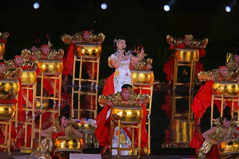 Dancers perform during the one-year countdown celebrations for the 29th Olympic Games in Tiananmen Square in Beijing August 8, 2007. [BOCOG]