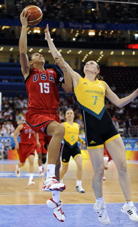 USA's Candace Parker (L) vies with Australia's Penny Taylor  during the women's basketball gold medal match Australia against The US of the Beijing 2008 Olympic Games on August 23, 2008 in Beijing. [Agencies]