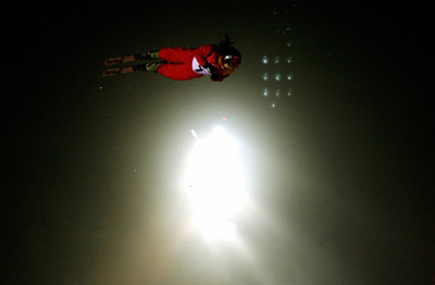 China's Li Nina competes during qualification in the women's aerials freestyle competition at the Torino 2006 Winter Olympic Games in Sauze, Italy, February 21, 2006. [REUTERS]