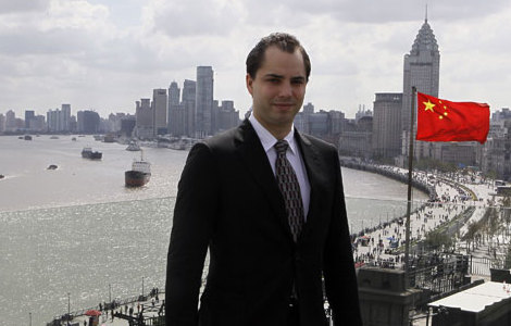 "Santa Claus" surfs. A man wearing a Santa Claus costume surfs in Umea, Sweden on Dec 4, 2011. [Photo/CFP]