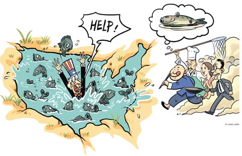 Members of a militant women group, GABRIELA, lie on a street while holding placards during a protest condemning the Philippine-US joint military exercises in front of the US Embassy in Manila April 27, 2012. American and Philippine troops waded ashore on Wednesday in a mock assault to retake a small island in the South China Sea. [Photo/Agencies]