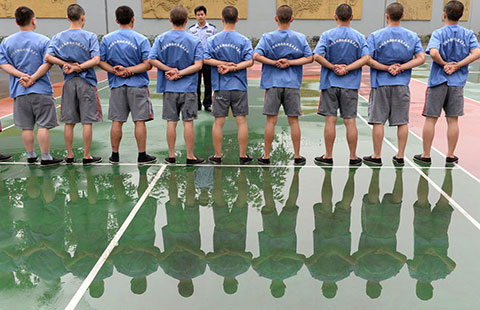 Wei Guirong drives his granddaughters from kindergarten on his home-made three-wheeled vehicle in Luorong county, Liuzhou city of Guangxi Zhuang autonomous region, on May 19.