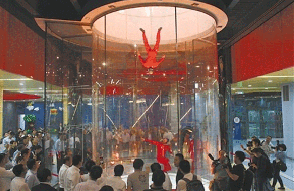 The venue includes an indoor wind tunnel to emulate skydiving, a wave machine for indoor surfing, an indoor rock climbing wall and a zip line. The center also include areas for children’s rock climbing, target golf, running and cycling tracks, and various retail shops to provide alternative activities. It will develop its supporting service system including stores and hotels to improve the overall experience of extreme sports lovers of Chongqing.