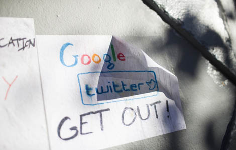 Students from the School of Communication and Art of the University of Sao Paulo perform a skit titled "Blind Ones" as a protest against consumerism inside a shopping mall of Natal, capital of Rio Grande do Norte state, December 9, 2013. The group plans to take the protest to cities in Europe and North America in 2014. [Photo/Agencies]