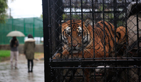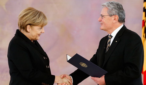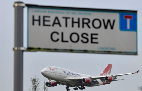 A journalist, wearing slippers to protect the glass floor, stands in the 'Step into the Void' installation during a press visit at the Aiguille du Midi mountain peak above Chamonix, in the French Alps, December 17, 2013. The Chamonix Skywalk is a five-sided glass structure installed on the top terrace of the Aiguille du Midi (3842m), with a 1,000 metre drop below, where visitors can step out from the terrace, giving the visitors the impression of standing in the void. The glass room will open to the public on December 21, 2013. [Photo/Agencies] |