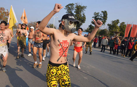 A female dog feeds her three pups and two abandoned tiger cubs at the Hangzhou Safari Park in Zhejiang province, Dec. 22. [icpress.cn]