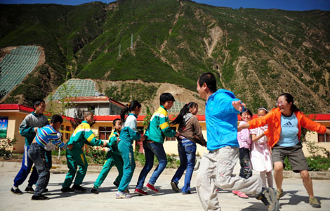 Rafael Nadal of Spain hits a return to Daniel Brands of Germany during their men's singles match at the French Open tennis tournament at the Roland Garros stadium in Paris, May 27, 2013. [Photo/Agencies]