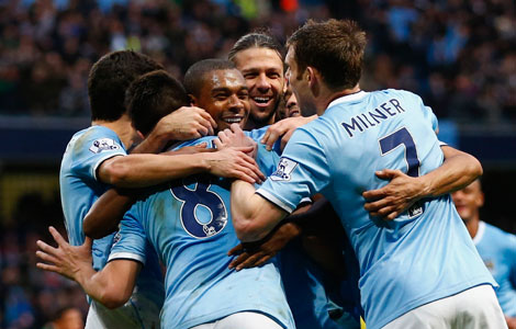 What had been the tightest defense in the league was ripped apart, with City's eighth straight home win sealed by goals from Fernandinho (two), Sergio Aguero, Alvaro Negredo, David Silva and Yaya Toure.