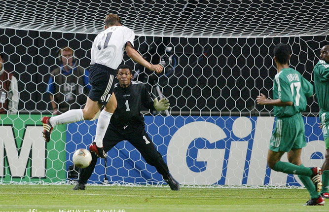 Iran's Jalal Hosseini (L) heads the ball near Nigeria's Ahmed Musa during their 2014 World Cup Group F soccer match at the Baixada arena in Curitiba June 16, 2014. [Photo/Agencies]