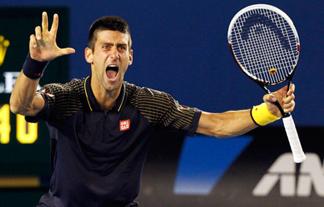 Novak Djokovic wore down Andy Murray in a gruelling four-set final to clinch the professional era's first hat-trick of Australian Open titles in attritional style on Sunday.