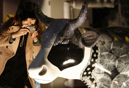 Updated: 2009-01-08 21:05 A visitor takes a picture of an art piece, shaped as an ox, titled "Cheongsam" during the Cow Parade exhibition, as part of the upcoming Chinese Lunar New Year of the Ox celebrations in Taipei January 8, 2009. More than one hundred painted oxen designed by artists in Taiwan are on display till February 1 to mark the Lunar New Year which will fall on January 26. [Agencies] ![]() ![]() ![]() |