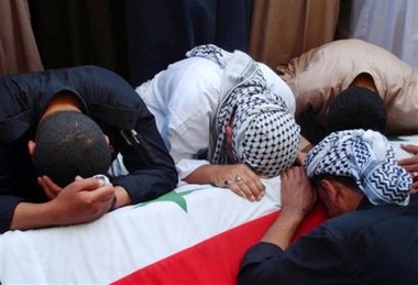 Iraqi mourners lay