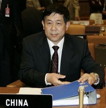 Head of the Chinese delegation Qin Sun waits for the start of a meeting of the 35-nation board members of the International Atomic Energy Agency (IAEA) at Vienna's International Center, on Monday, June 12, 2006. The meeting is overshadowed by the standoff over Iran's uranium enrichment program. [AP]