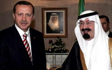 Arabia (R) and Turkey's Prime Minister Tayyip Erdogan (L) pose for