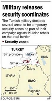 Authorities blamed the Kurdish rebels for the blast, which came amid increasing activity by Turkish troops along the frontier that has fed concerns the army might stage a large-scale offensive against rebel bases in the predominantly Kurdish region of northern Iraq. Turkish leaders say guerrillas cross into Turkey to stage attacks in their recently escalated fight to win autonomy for southeastern Turkey, where ethnic Kurds make up much of the population. In a statement on its Web site, the military's General Staff vowed to fight the rebels and called on all Turks to stand together "to resist in the face of these terrorist actions." "The Turkish Armed Forces has an unshakable determination in fighting terrorism and it will absolutely give the necessary answer to such attacks," it said. The bomb targeted a military vehicle near Siirt, a city 46 miles north of the Iraq border, the governor's office said. It killed three soldiers and wounded six other security personnel, including pro-government village guards, the office said. Turkey has grown increasingly frustrated with the rise in attacks by the PKK rebel movement, and its leaders have sent more troops to the frontier while publicly raising the possibility of sending the army into northern Iraq. On Wednesday, the military said it was establishing "temporary security zones" near the border. The declaration came the same day that Turkish security officials and an Iraqi Kurdish official said hundreds of Turkish soldiers crossed the border pursuing guerrillas. Turkey's foreign minister denied there was a cross-border operation. Turkey is an ally of the United States, and US officials have argued against an attack into Iraq, fearing that might drag its Iraqi Kurdish allies into the conflict. Some think Turkey may hope its military buildup will push the United States and Iraqi Kurds to crack down on the separatists and head off a Turkish offensive. The military did not say what it meant by "temporary security zones." Some Turkish media said the areas would be closed to civilian plane flights, but others said additional security measures would be implemented in the zones and entry would be restricted. In a statement posted on its Web site, the military said the zones would be in place until Sept. 9, but gave no other information. Newspapers said the areas are in Sirnak, Siirt and Hakkari provinces. Sirnak and Hakkari are next to the border, while Siirt is north of the frontier. All three provinces have been the scene of fighting with Kurdish rebels. Some Turkish officials have said that if troops stage a major incursion into Iraq, they might set up a buffer zone inside Iraq to try to stop rebel infiltration. Iraqi President Jalal Talabani, a Kurd, cautioned Turkey against such an operation and urged cooperation. "We ask almighty God to lead all of us to the way of dialogue and negotiation to solve all questions," Talabani told reporters Thursday. "There is a tripartite, American-Iraqi-Turkish committee that is responsible for solving these matters." Speaking as commander in chief of Iraq's military forces, he said the Iraqi government would not accept foreign interference and "will defend by all means its sovereignty and the independence of the nation." Turkish Prime Minister Recep Tayyip Erdogan has said an incursion into northern Iraq would require parliamentary approval. Gen. Yasar Buyukanit, the military chief, said the army was ready for an offensive but the decision was up to political leaders. |