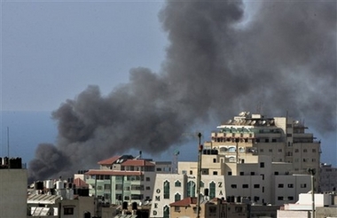 Tuesday's battles marked a turning point, with Hamas moving systematically to seize Fatah positions in what some in the Islamic militant group said would be a decisive phase in the yearlong power struggle. The confrontations became increasingly brutal in recent days, with some killed execution-style in the streets, others in hospital shootouts or thrown off rooftops. The conflict escalated further when the Fatah central committee decided to suspend the activities of its ministers in the government it shares with Hamas. In an emergency meeting in the West Bank city of Ramallah, Fatah decided on a full withdrawal if the fighting doesn't stop, said government spokesman Nabil Abu Rdeneh. President Mahmoud Abbas accused the Islamic militants of Hamas of trying to stage a coup. A survivor of the Hamas assault on the northern security headquarters said the Fatah forces were outgunned and reinforcements never arrived. "We were pounded with mortar, mortar, mortar," the Fatah fighter, who only gave his first name, Amjad, said, breathing heavily. "They had no mercy. It was boom, boom. They had rockets that could reach almost half of the compound." Battles raged across the Gaza Strip during the day. The staccato of gunfire echoed across Gaza City, plumes of smoke rose into the air from far-flung neighborhoods and one firefight sent a dozen preschoolers scrambling for cover. In a sign of the heightened hostilities, both sides threatened to kill each other's leaders. A rocket-propelled grenade damaged the home of Prime Minister Ismail Haniyeh of Hamas and four mortar shells slammed into Abbas' Gaza City office. Neither attack caused any injuries. Desperately trying to boost morale, disorganized Fatah forces attacked Hamas' main TV station, but were repelled after a heavy battle. The station later showed a group of captured men it said were among the attackers, blood streaming down their faces. Many Gazans, pinned down in their homes, were furious with the combatants. "Both Fatah and Hamas are leading us to death and destruction," said Ayya Khalil, 29, whose husband serves as an intelligence officer. "They don't care about us." There was concern the fighting might spread to the West Bank, where Fatah has the upper hand, as Hamas notched victories in Gaza. Late Tuesday, Fatah gunmen wounded four Hamas activists in the West Bank city of Nablus, Fatah said in a statement. In Jerusalem, Israeli Prime Minister Ehud Olmert proposed stationing international forces along the Gaza Strip's border with Egypt to prevent arms from reaching Palestinian militants, including Hamas. However, he ruled out assistance to Abbas' forces. UN Secretary-General Ban Ki-moon called for an immediate halt to the violence and urged all sides to support Abbas. The UN warned that its efforts to supply refugees with assistance were in jeopardy because of the fighting. Hamas and Fatah have waged a power struggle in fits and spurts since Hamas won parliamentary elections in January 2006, and Hamas signaled that the fighting was moving into a decisive phase. It ignored pleas by Abbas and exasperated Egyptian mediators to honor a cease-fire. "Decisiveness will be in the field," said Islam Shahwan, spokesman for the Hamas military wing. In contrast, Fatah commanders complained they were not given clear orders by Abbas to fight back and that they had no central command. Fatah's strongman in Gaza, Mohammed Dahlan, has spent the last few weeks in Cairo because of a knee injury. Other leading Fatah officials left Gaza for the West Bank after previous rounds of bloodshed. "There's a difference between leading on the ground and leading by mobile phone," police Col. Nasser Khaldi said of Dahlan's absence. "Hamas is just taking over our positions. There are no orders." Both sides have been arming themselves in recent weeks, smuggling weapons through tunnels from Egypt. Abbas accused Hamas leaders of trying to seize control of Gaza by force. The headquarters of the Fatah-allied security forces in northern Gaza, a key