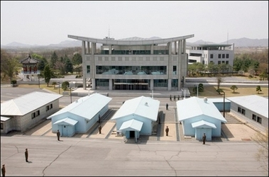 truce village of Panmunjom in the middle of the Demilitarized Zone running