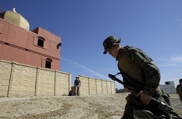 Marines practicing scenarios at a fake Iraqi village at Camp Pendleton, Calif., Thursday, Feb. 28, 2008. [Agencies]