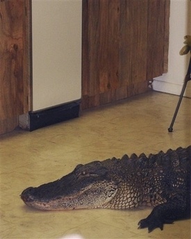 In this photo released by the Pinellas County Sheriff's Office on Tuesday April 22, 2008, an 8-foot long alligator is seen in the kitchen of an Oldsmar, Fla. home Monday, April 21, 2008. [Agencies]