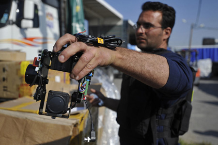 An Israeli security guard holds an electronic device at the Kerem Shalom crossing outside the southern Gaza Strip January 12, 2009. Israel said on Monday it was investigating how a night-vision security camera and other electronics ended up on humanitarian aid trucks bound for the war-torn Gaza Strip. The equipment was seized at the Kerem Shalom border crossing before entering the coastal enclave along with truckloads of food, medicine and other humanitarian goods, said defence official Peter Lerner. [Agencies]