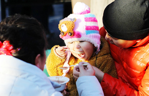 The Empire State Building is pictured though a lighted tree as it is lit in traditional Christmas colors during unseasonably warm weather on Christmas Eve in the Manhattan borough of New York, Dec 24, 2015. [Photo/Agencies] |