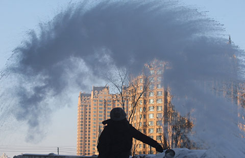 A Capitol Hill employee uses a heavy earth moving machine to clear snow during a winter storm in Washington January 23, 2016. [Photo/Agencies]