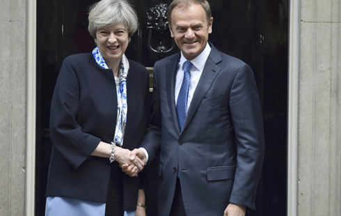 It was the first time the two had met since May triggered the Article 50 process last week, setting in motion Britain's departure from the European Union (EU) through an official letter delivered to Tusk on Britain's decision to leave the bloc.