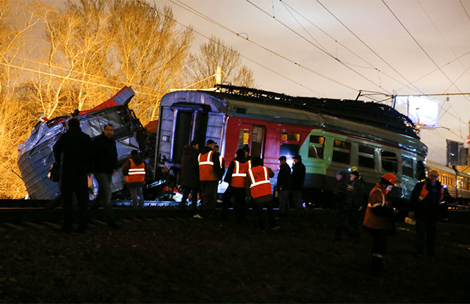 According to Russian Railways (RZD) website, a passenger train heading from Moscow to Belarus collided with another train Saturday at 10:16 p.m. local time (2016 GMT) when it made an emergency brake to avoid hitting pedestrians. The two trains derailed and left some 50 people wounded.