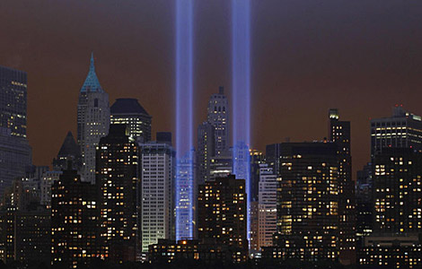 Thousands gathered on a clear Sunday morning to grieve where the twin towers of the World Trade Center once stood. With security high and no traffic, there was an eerie silence where a decade ago the 110-storey skyscrapers collapsed after being hit by hijacked airliners, sending a cloud over lower Manhattan.